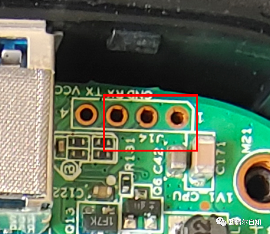 连接排针和TTL线,然后插入这个孔,最好是焊接,不然不稳定。