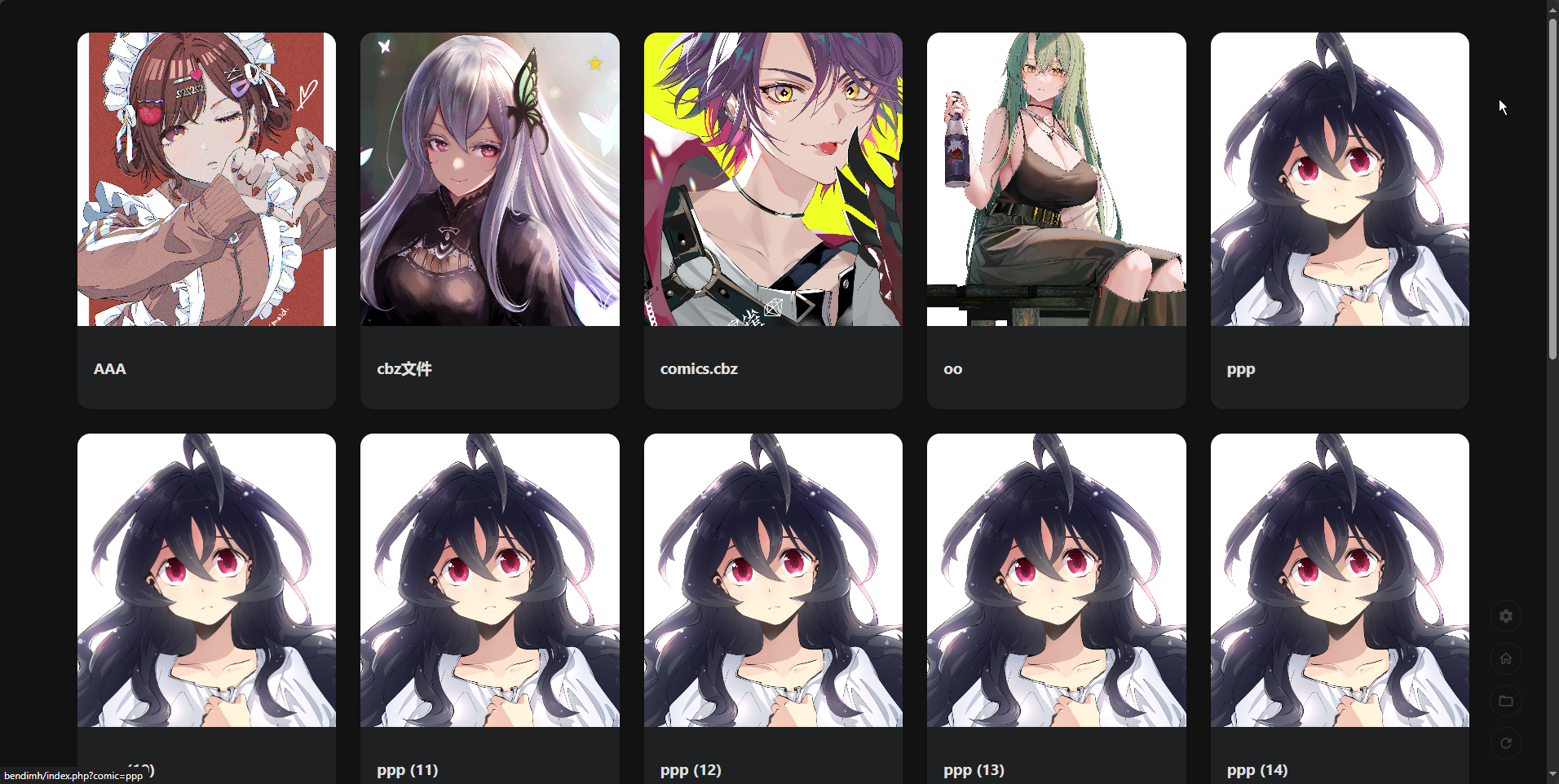 可以把下载的漫画拷贝到comics目录下,comics目录下每一个文件(zip,cbz)是一本漫画,一个文件夹是一本漫画(文件夹中的每一个文件(或文件夹)是一章)。如下: